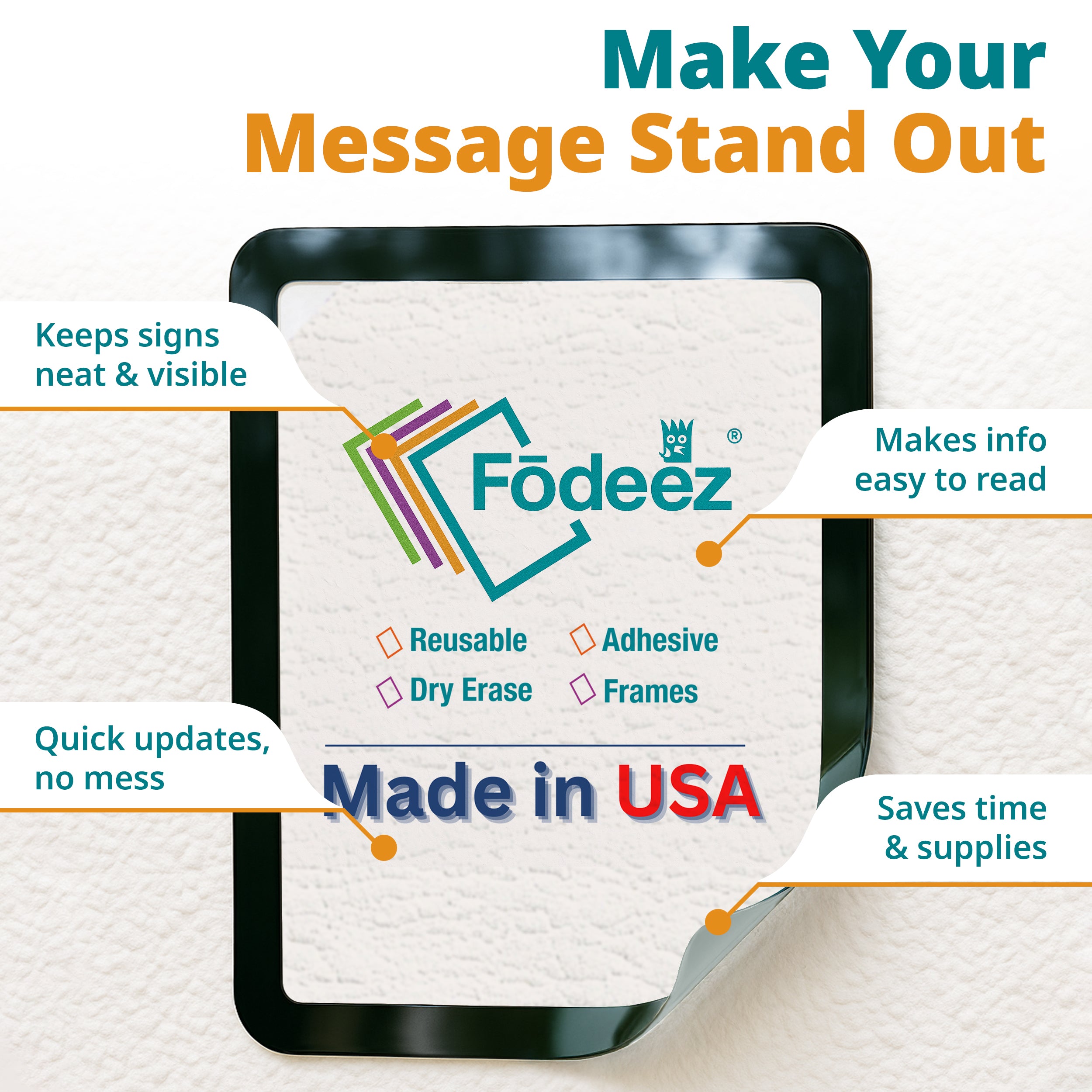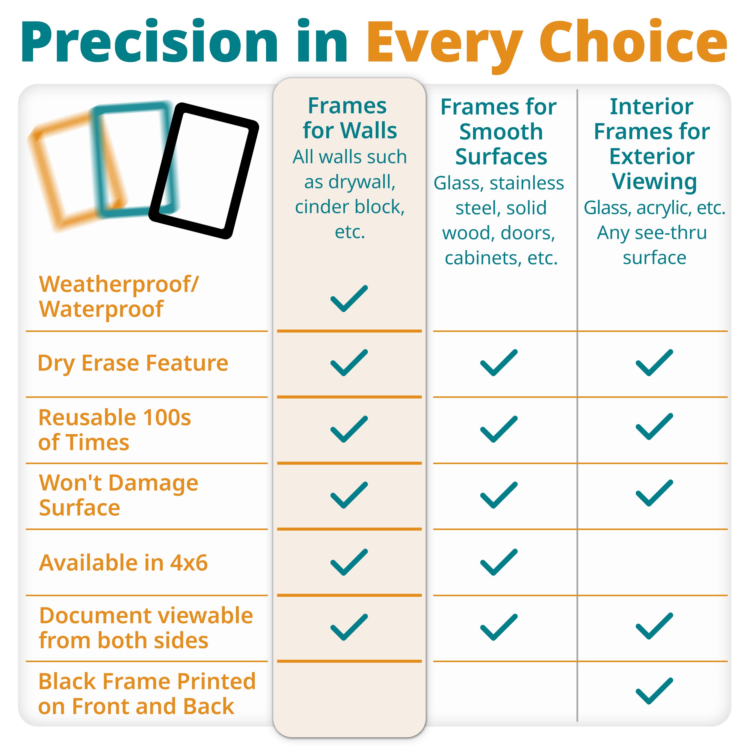 The Fodeez® Reusable Adhesive Frames on this page are for use on Interior Walls - not glass, not acrylic, not stainless steel.