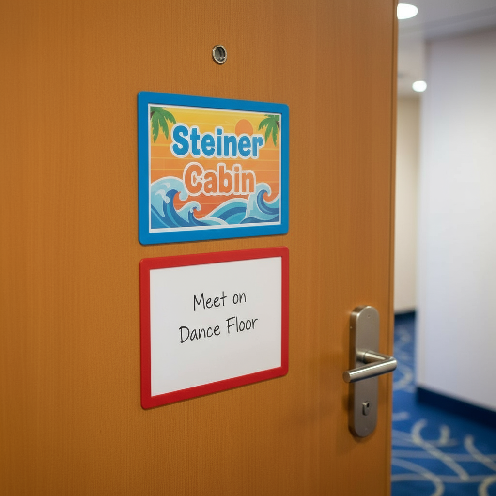 - Instant upgrades: Change your theme daily, celebrate a birthday, or announce “Meeting on Lido Deck!”—no sticky mess or leftover tape.