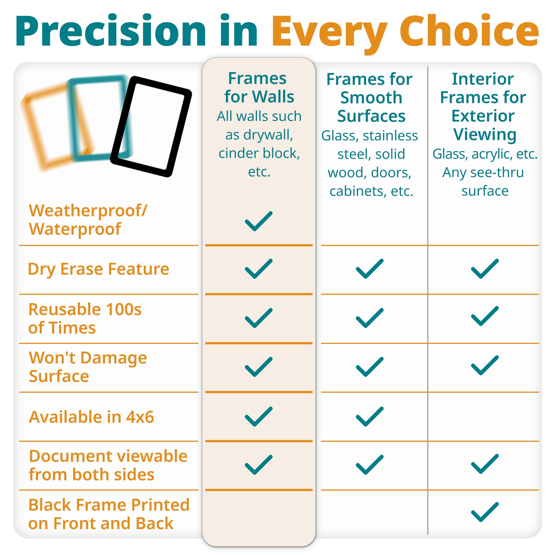 All of our frames are dry-erasable, making them the most effective checklist application on the market!